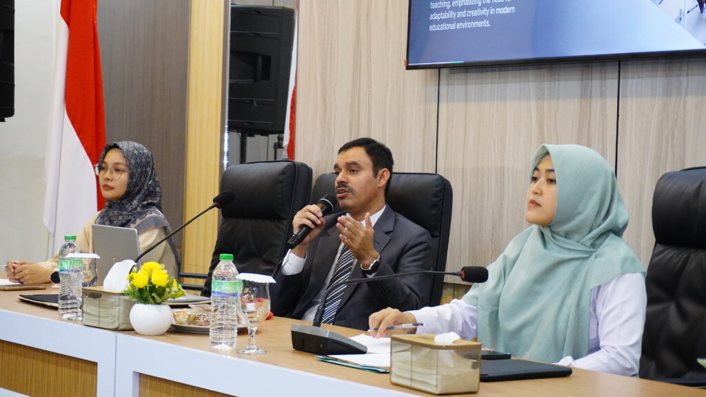 Purwokerto, 17 November 2025 — Program Studi Tadris Bahasa Inggris, Fakultas Tarbiyah dan Ilmu Keguruan (FTIK) UIN Prof. K.H. Saifuddin Zuhri Purwokerto menggelar Internasional Guest Lecture bertema “Teaching English with Innovation, Technology, and Pedagogical Skills”, Senin, 17 November 2025 yang bertempat di Meeting Room K.H. A. Wahid Hasyim. Kegiatan yang dibuka pukul 13.00 itu menghadirkan akademisi asal luar negeri, Wazir Ali, M.A., M.Ed., M.Phil., yang memaparkan transformasi pengajaran bahasa Inggris di era teknologi digital.